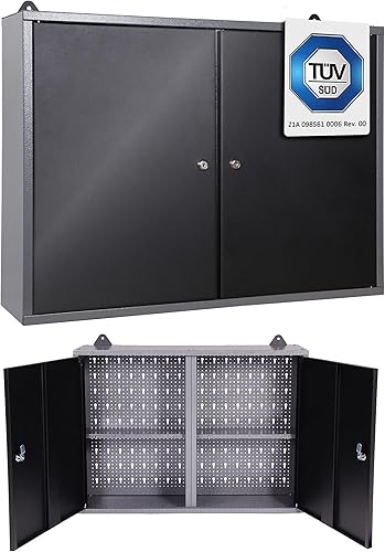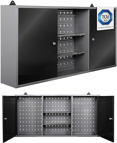 Ondis24 Werkstatt Hängeschrank Metall Werkzeugschrank abschließbar Grau Schwarz 120 cm - Kurt