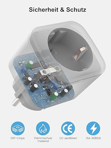 Tasmota Steckdose mit Stromzähler, EIGHTREE Alexa WLAN Smart Steckdose, Smart Home, ESP8685 mit Home Assistant, MQTT, Domoticz, OpenHAB, ioBroker, 16A, nur 2,4GHz-WLAN, 4pcs