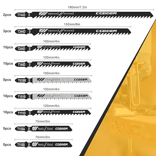 Stichsägeblatt Set, CGBOOM 60 tlg Stichsägen Zubehör, T-Schaft Jigsaw Stichsägeblatt mit Kunststoffbox für Holz und Metall