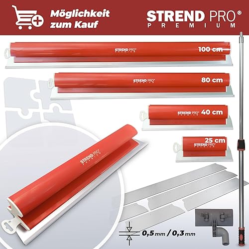 STREND PRO Flächenspachtel Set PREMIUM V2 | inkl. Fassadenspachtel 1000mm, 800mm, 600mm, 400mm, 250mm Glättspachtel, Teleskopgriff, Transportkoffer | PROFI Z Spachtel Set für Trockenbau, Verputzer