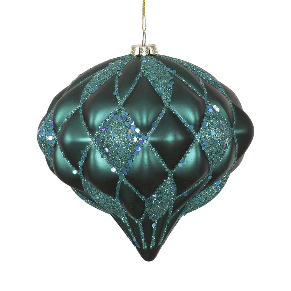 Vickerman 5.7" Emerald Matte/Glitter Diamond Onion Christmas Ornament