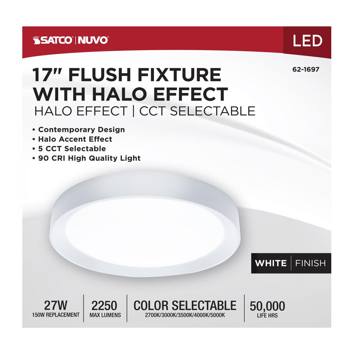 62-1697 SELENE 17" LED FLUSH MOUNT Selene; 17 Inch LED Flush Mount; CCT Selectable; White Finish