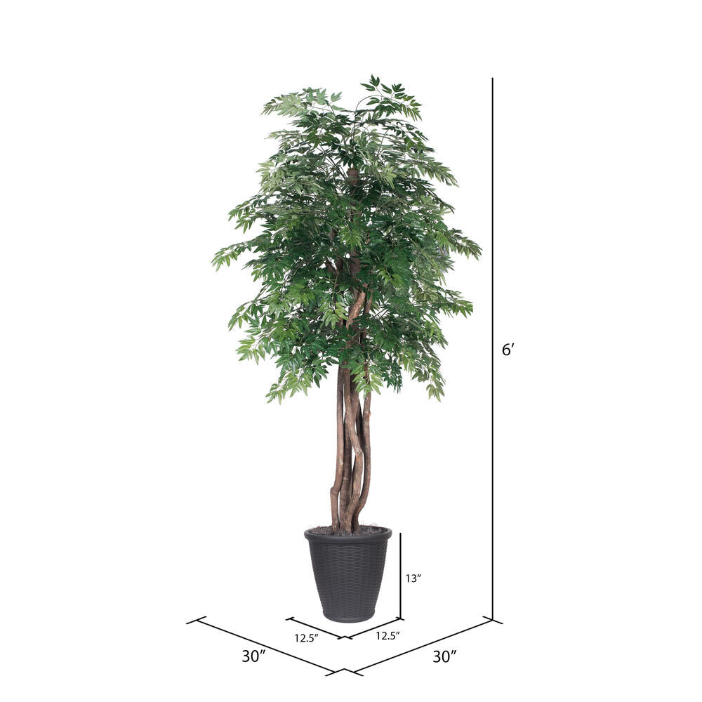 Vickerman 6' Artificial Ming Aralia Executive Tree Gray Round Plastic Container.