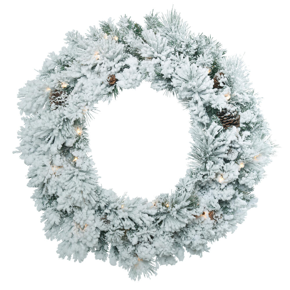 Vickerman 30" Flocked Ashton Pine Artificial Christmas Wreath Clear Dura-lit Incandescent Mini Lights