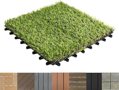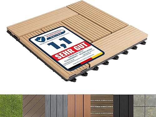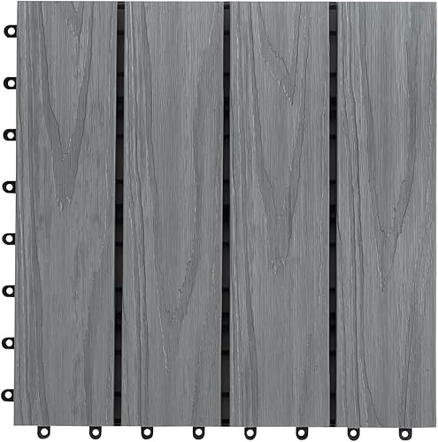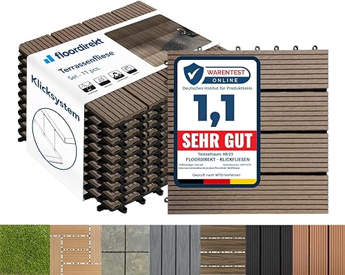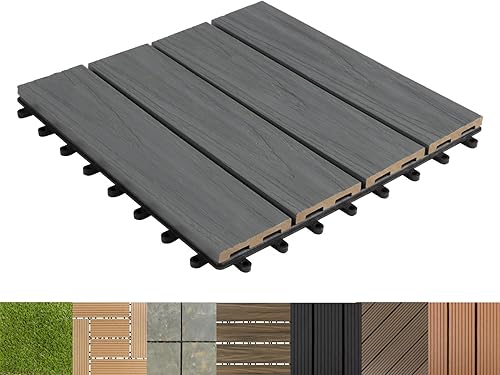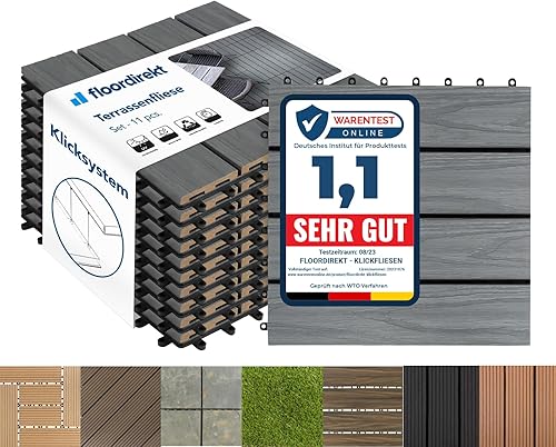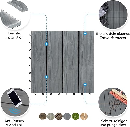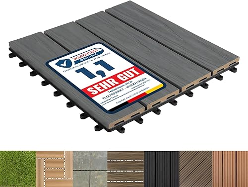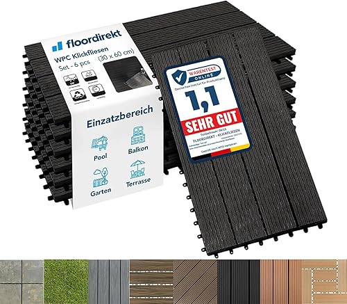 Floordirekt WPC Fliesen 30x30 cm, 1m² = 11 Terrassenfliesen, Klickfliesen, Balkonfliesen in Holzoptik - Bodenbelag für Balkon & Terrasse - wetterfest mit Drainagefunktion | Anthrazit | Royal