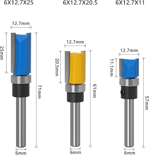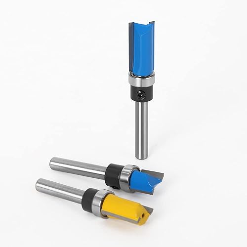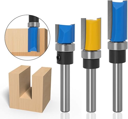 WSOOX 3 Stück Professional Bündigfräser Set mit 6mm Schaft, 2 Flutes Gerades Fräser Schneidmesser Holzbearbeitungs Schneidwerkzeug