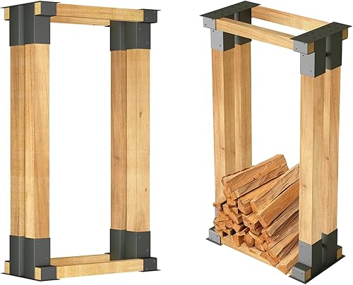 SWANEW Holzstapelhilfe 4 Stück, Stabile Holz Stapelhilfe, Brennholz Stapelhilfe, Holzstapelhalter, Kaminholz Gestell Holz, Schwarz