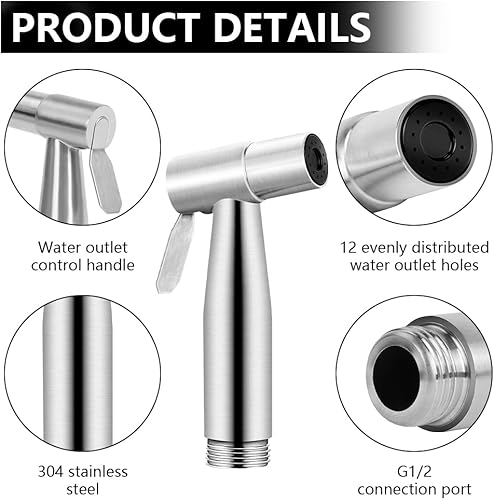 HOTUT Bidet Edelstahl Handbrause,Bidet Set mit Toiletten Bidet Sprühkop, Schlauch und Hakentoilette Duschkopf, Bidet Handbrause für Toilette, Badezimmer, Garten, Balkon, Haustierreinigung