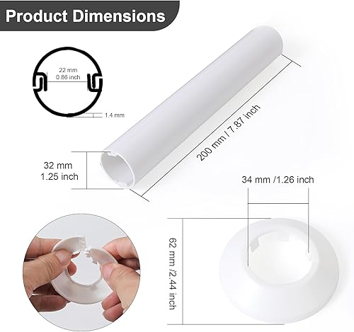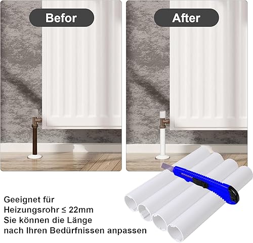Kunststoffschlauch Heizungsrohr Verkleidung,Rohrverkleidung,Heizkörper Rohrisolierung,Universeller Innendurchmesser kleiner als 22mm,4 Stück 200mm(Länge) X 32mm(Außendurchmesser)+4 Stück Rosette