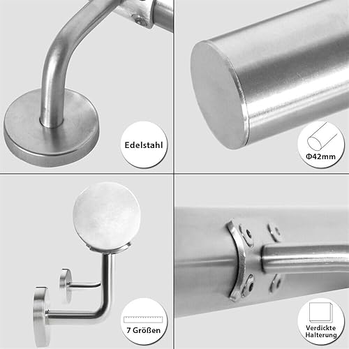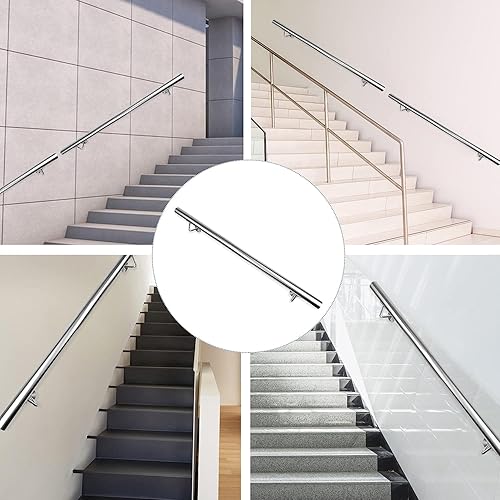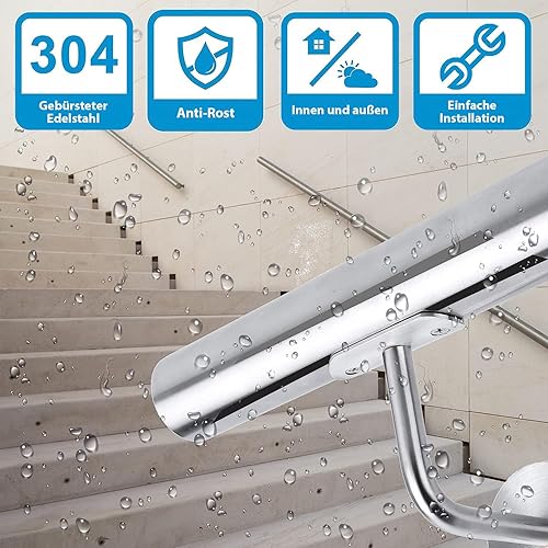 CAVATINY Edelstahl Handlauf Geländer für Treppen Brüstung Balkon - Wandhandlauf Wandhalterung - Innen und Außen Handlauf Geländer Treppengeländer Edelstahl (80CM)