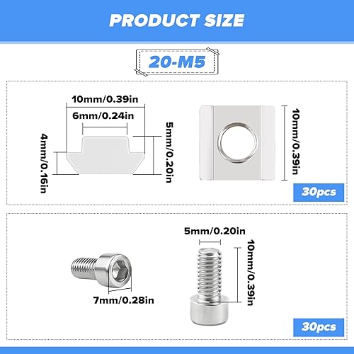 LPZMPZ 10 Stück Nutensteine M8 Set, Edelstahl T Nutenstein Nut 8 mit Schraube, Serie 3030 T-Nut-Muttern Typ B für Aluprofil, Spannpratzen, C Profil, Aluminiumprofil-Extrusionsschlitz (30-M8-Nut8)