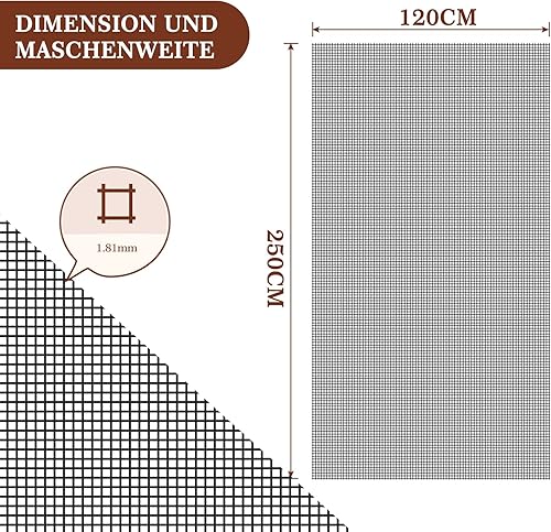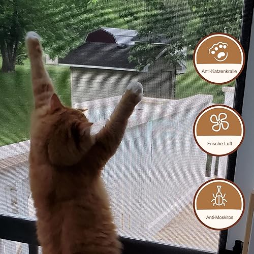 Yotache Katzenschutzgitter 220×90 cm, Petscreen katzengitter Fenster ohne Bohren, PVC-beschichtetes Polyester Insektenschutz Fliegengitter, Schwarz