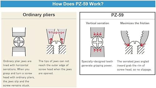 Robuste Kombizange mit vertikalen Rillen zum schnellen Lösen beschädigter Schrauben. Japanische Herstellung. ENGINEER PZ-59