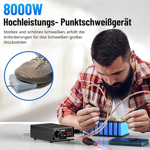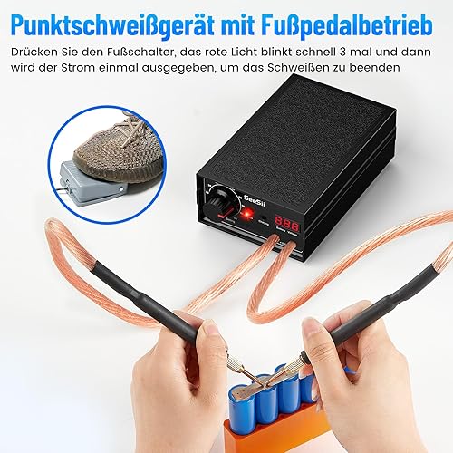 Seesii 8000W Punktschweißgerät - SEE-08 Spot Welder 10-90 Gänge mit Pedal, 2025 Aufgerüstet Punktschweißgerät für Akkus mit Dual Impuls Ausgang für 0,1-0,3 mm Nickelblech