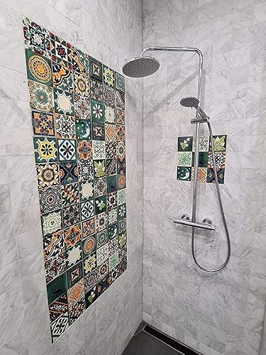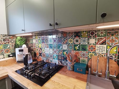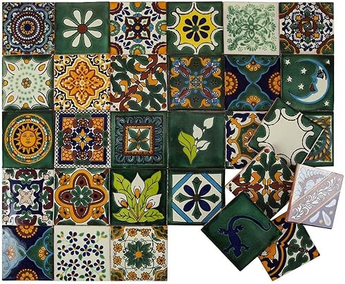 Cerames Mexikanische Keramische Fliesen Verde - 30 dekorative mexikanische mosaik fliesen für Badezimmer, Küche, Dusche, Treppen, Küchenrückwand | Keramikmosaikfliesen 10,5x10,5 cm