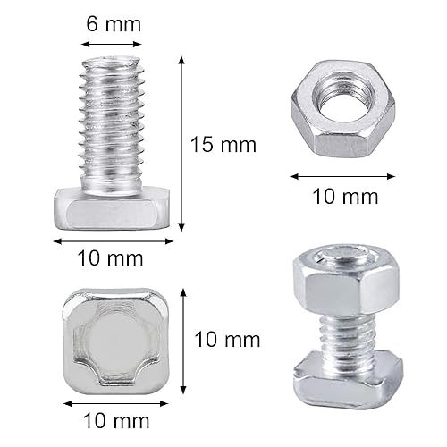 Sctmda Gewächshaus Schrauben Aluminium 50 Stück Hammerkopfschrauben M6 x15mm mit Mutter Gewächshaus Schrauben Alu Hammerschraubenalu Vierkantschrauben Muttern Schraube M6 mit Muttern Set