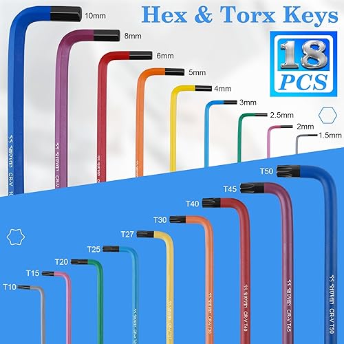 18TLG Innensechskant Satz mit Griff, Sechskantschlüssel Set mit Kugelkopf 1,5mm-10mm & Torx Schlüsselsatz T10-T50, Innensechskantschlüssel für Möbeln, Fahrrad reparatur und Haushalts Geräten