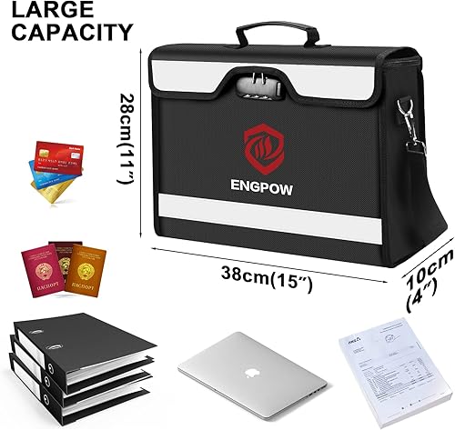 Dokumententasche Feuerfeste und Wasserdichte Sicherheitstasche Verbesserte Abschließbare Geldtasche mit Großer Kapazität Sichere Tasche Langlebige Aufbewahrungstasche für Dokumenten,Laptop