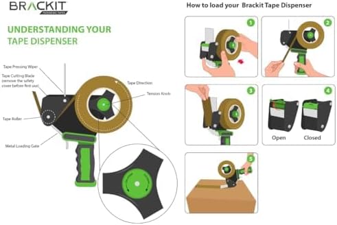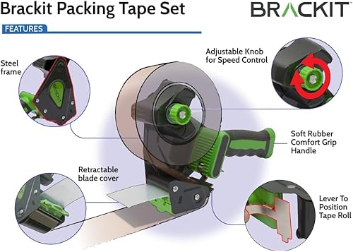 Paketklebeband Transparent - 6 St - Mit Profi Abroller - 48mm-Breit; 66m-Lang - Klebeband, Paketband, Packband - Prämie 50mic; Mit Starke Stabiler klebebandabroller (Brackit - Premium Qualität)