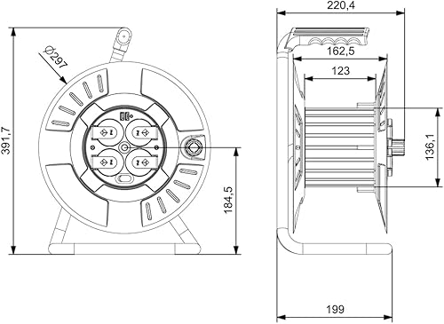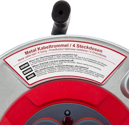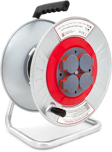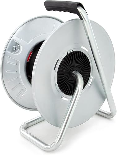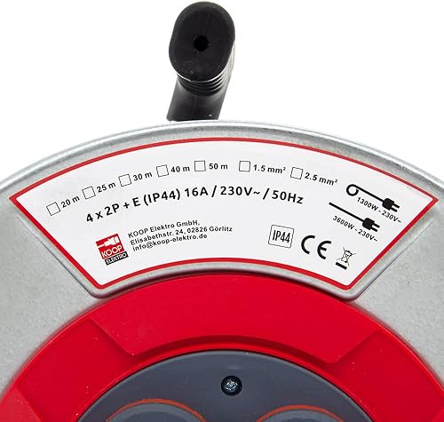 KOOP Elektro Metall Leer Kabeltrommel, Trommel ohne Kabel, Metallbaurolle mit 4 Steckdosen, IP44 Schuko Aufbewahrungstrommel leer für Innen/Außenbereich