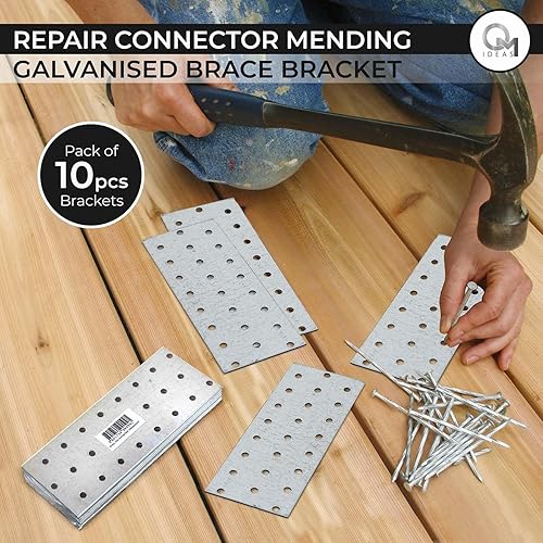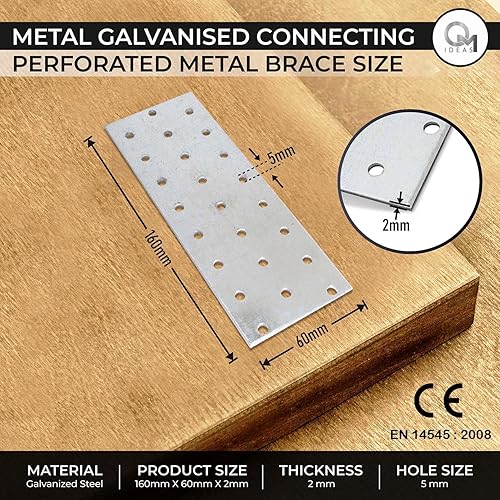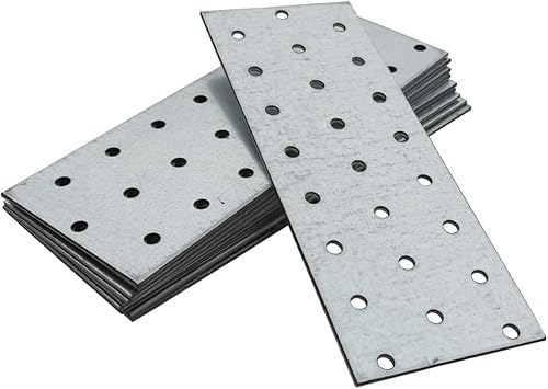 OMIDEAS 10 x Lochplatten (100 x 40 x 2) Flachverbinder Holzverbinder Verbindungsplatte Verbinder, Silber Verzinkt