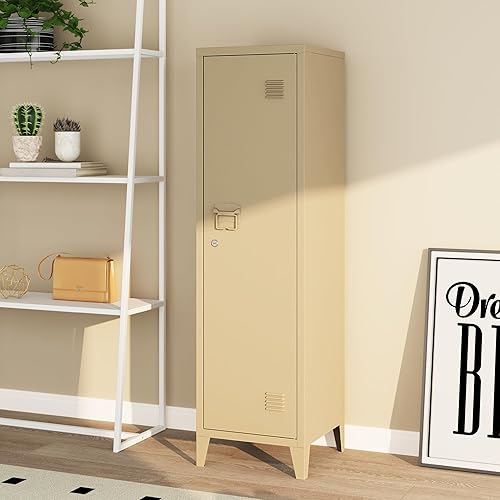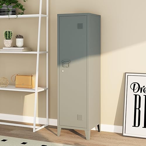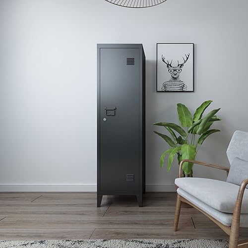 [en.casa] Einzelspind Kurikka Metallspind mit 2 Ablagen 137 x 38 x 38 cm abschließbar Schließfachschrank Metallschrank Garderobenschrank Pastellgrün