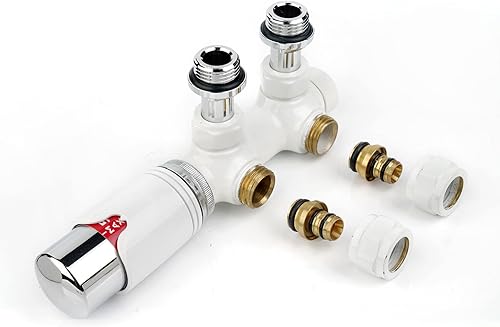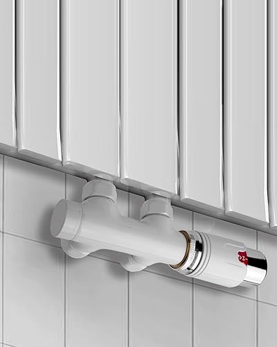 S SIENOC H-Ventil Anschlussgarnitur Mittelanschluss/Radiator Valves Thermostat Für Badheizkörper Mit Zweirohr System(Nur Thermostatkopf Weiß)