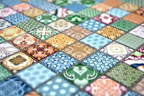 Retro Vintage POP UP Mosaik Fliese Keramik mehrfarben bunt für WAND BAD WC DUSCHE KÜCHE FLIESENSPIEGEL THEKENVERKLEIDUNG BADEWANNENVERKLEIDUNG WB18D-1616