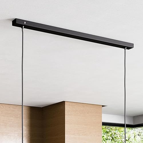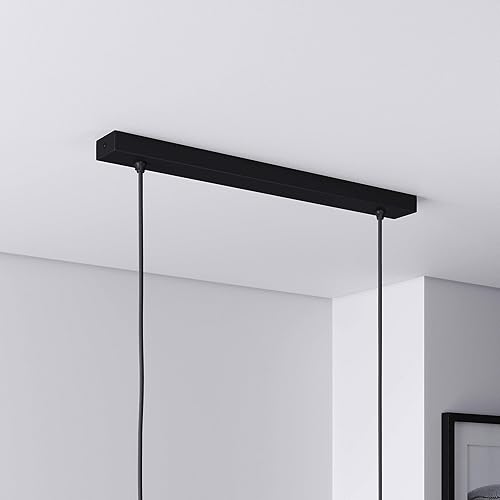 Lightstock Baldachin für Lampe Rechteckig, Abzweigdose mit 2 Kabelauslässen (L 50 x H 2.5 x B 5 cm), SCHWARZ - ideal für Esstisch, inkl. WAGO-Klemmen