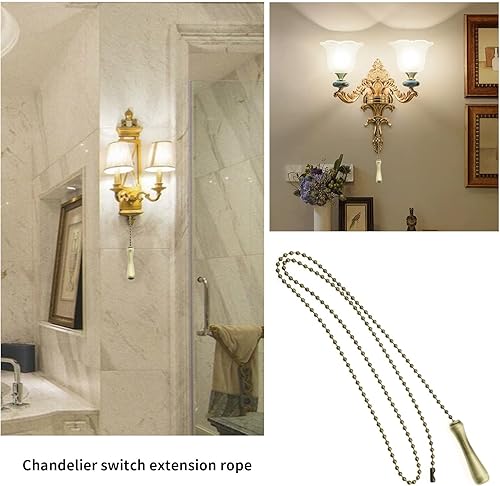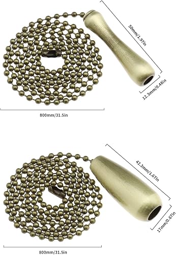 VGOL 2 Stücke Vintage Perlenkugel Zugkette Metall Lampe Zugschnur Glühbirne Schalter Kettenverlängerung für Deckenventilator Deckenlampen