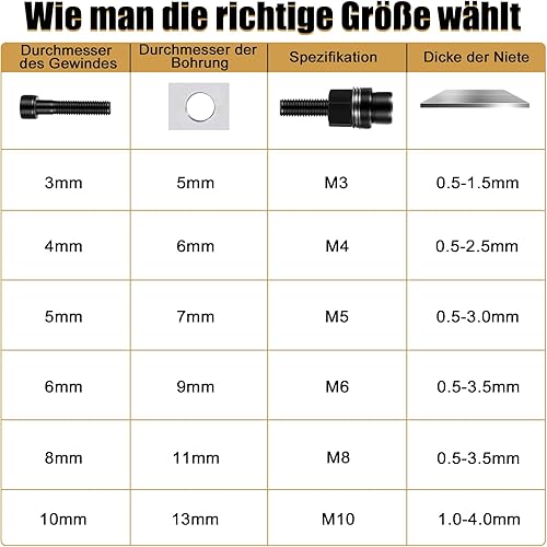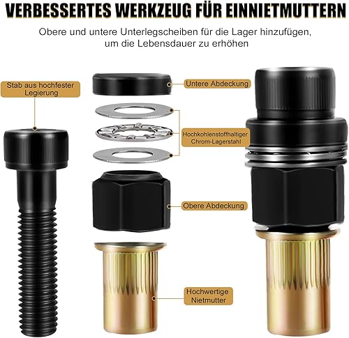 6 Stück Handnietwerkzeug Set M3 M4 M5 M6 M8 M10, Hand-Nietmuttern Werkzeug Mit 194pcs Nietmaschine Zubehör, Nietmutter Pistole Werkzeug, Entworfen für Enge Räume