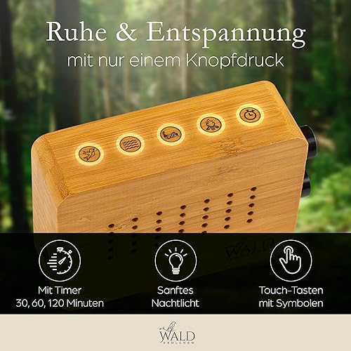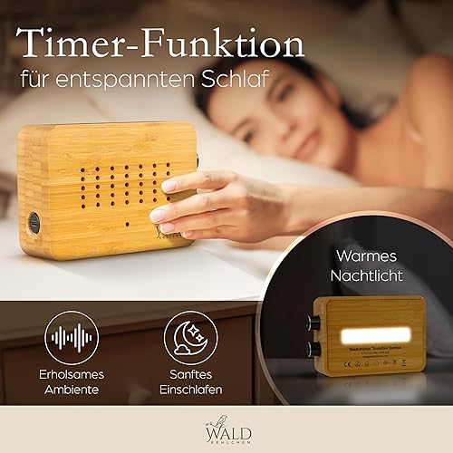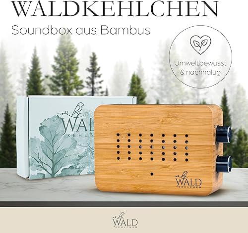 WALDKEHLCHEN - Vogelgezwitscher Box Toilette Bewegungsmelder aus echtem Bambus - Naturgeräusche Box mit sanftem Nachtlicht und Touchfunktion - Nachhaltiger Vogelzwitscher Bewegungsmelder mit Timer