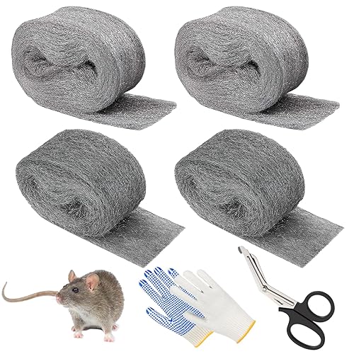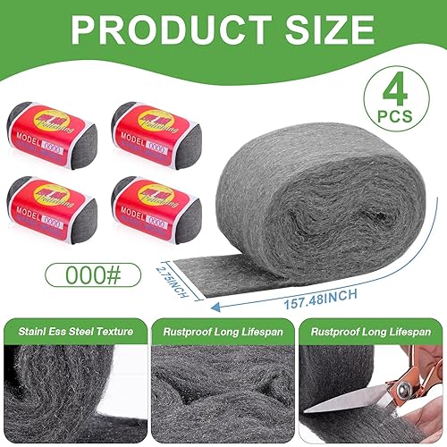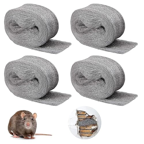 4 Stück Stahlwolle, Stahlwolle Fein 0000 Feinreinigung Draht Stahlwolle Metall Polieren Stahl Wolle Steel Wool Fein Wiederverwendbar Stahl Wolle Effektive Barriere Gegen Nagetiere(ca.3M)