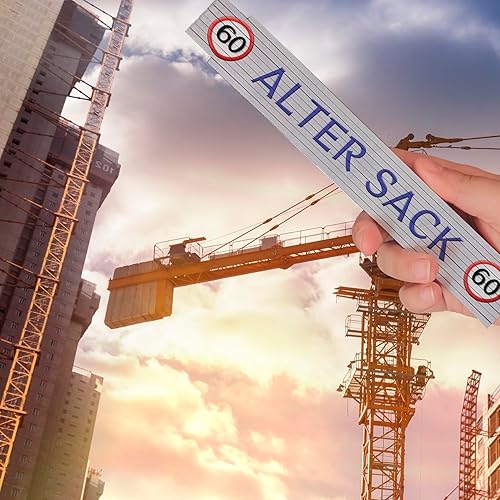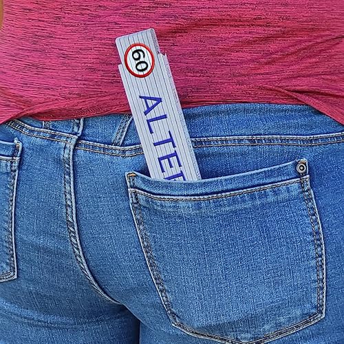 60 Alter Sack Meterstab aus Holz mit Verkehrsschild Geschenk lustiger Zollstock 60 Alter Sack Geburtstagsgeschenk Gliedermaßstab mit Spruch bedruckt und qualitativ hochwertig