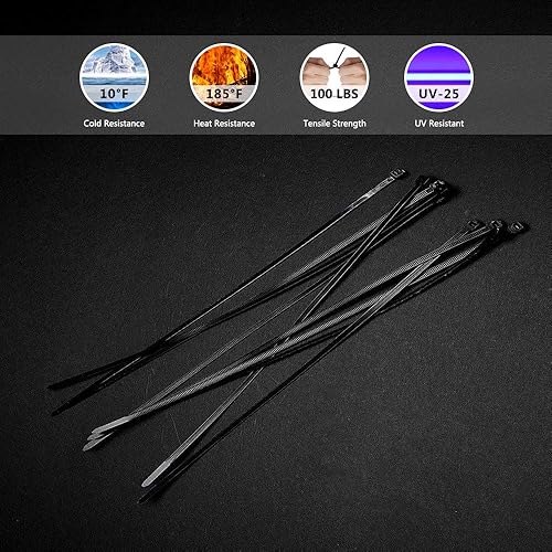 Kabelbinder Schwarz 300 mm x 7,6 mm, UV-Beständig ultra stark Kabelbinder mit 75 kg Zugfestigkeit, 100 Stück