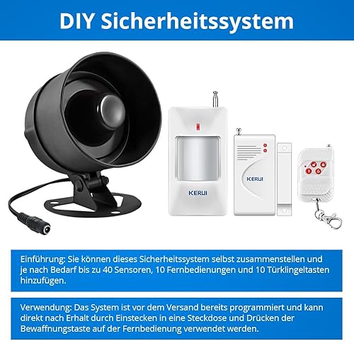 Alarmanlage Haus, Tür Alarmanlage Wohnung Kit mit 115dB Sirene, 2 Türsensoren, 2 Fernbedienungen und 1 Bewegungsmelder Fenster Einbruchschutz Alarm für Tür Fenster, Wohnmobil, Garage, Shed