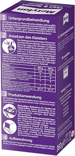 Metylan Vinyl & Spezial, starker Tapetenkleister in Pulverform für schwere Präge- und Vinyltapeten, leicht zu verarbeitender Kleister für den Innenbereich, transparent, 1x360g