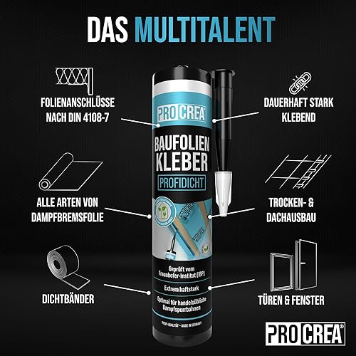 PROCREA® 12x Premium Folienkleber für Dampfsperre 'Profidicht' [Luftdicht nach DIN 4108] Dauerelastische Kleb- & Dichtmasse für Dampfbremsen, Dampfsperrfolien in Profi-Qualität - Made In Germany