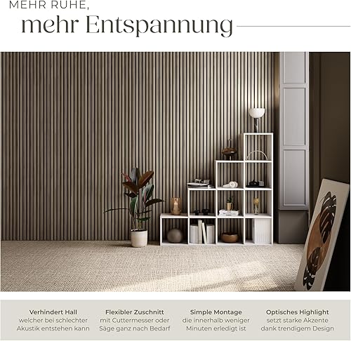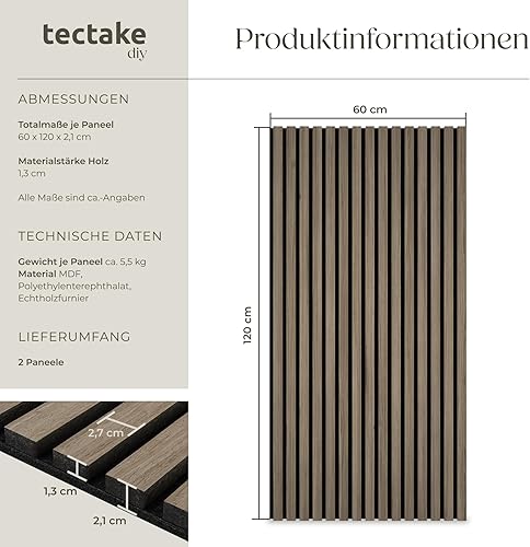 tectake® 3D Akustikpaneele, Holz Optik Paneele, Wandpaneele in Holzoptik als Schallabsorber, Panels für Wohnzimmer, Küche, Wand Deko, Wandverkleidung und Schallschutz - Eiche hell, 2er Set