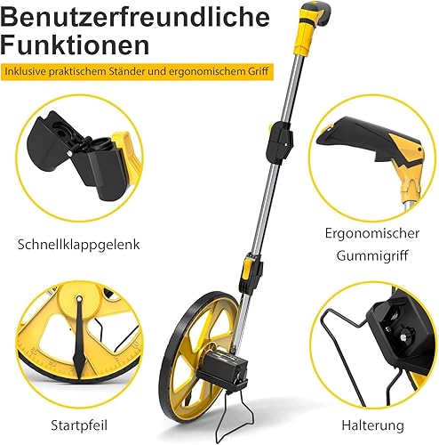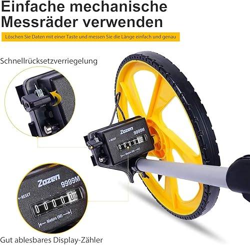 Zozen Messrad Drei Sätze, faltbar| Metrische Einheiten [bis zu 9999.9 m], Rollmessung mit Tragetasche, ein Schlüssel zum Zurücksetzen| Kickstand, um Stand zu halten| Startpunkt Arrow