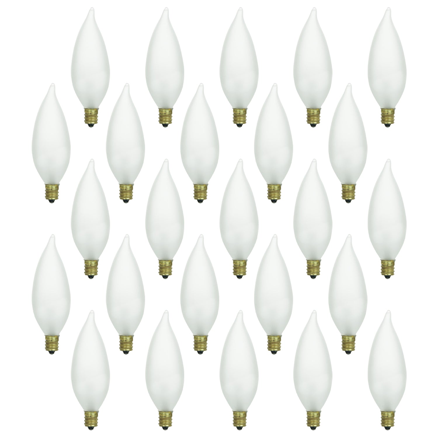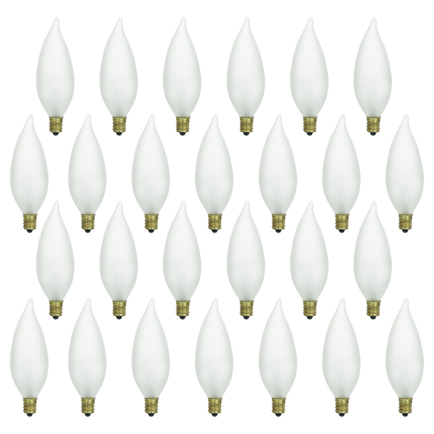 Sunlite 40 Watt Flame Tip Chandelier, Candelabra Base, Frost