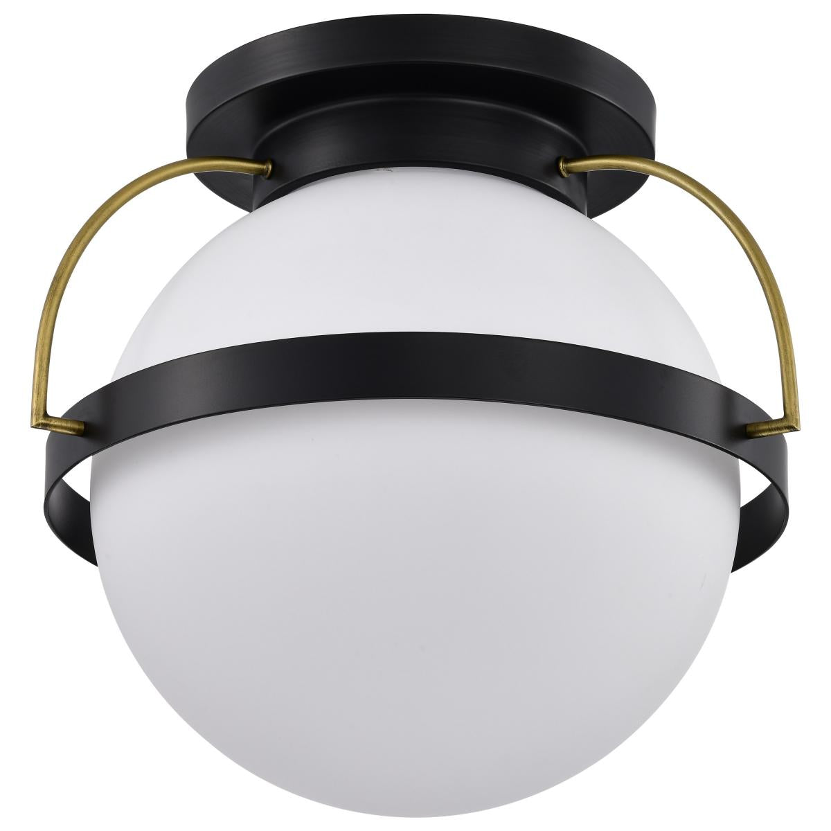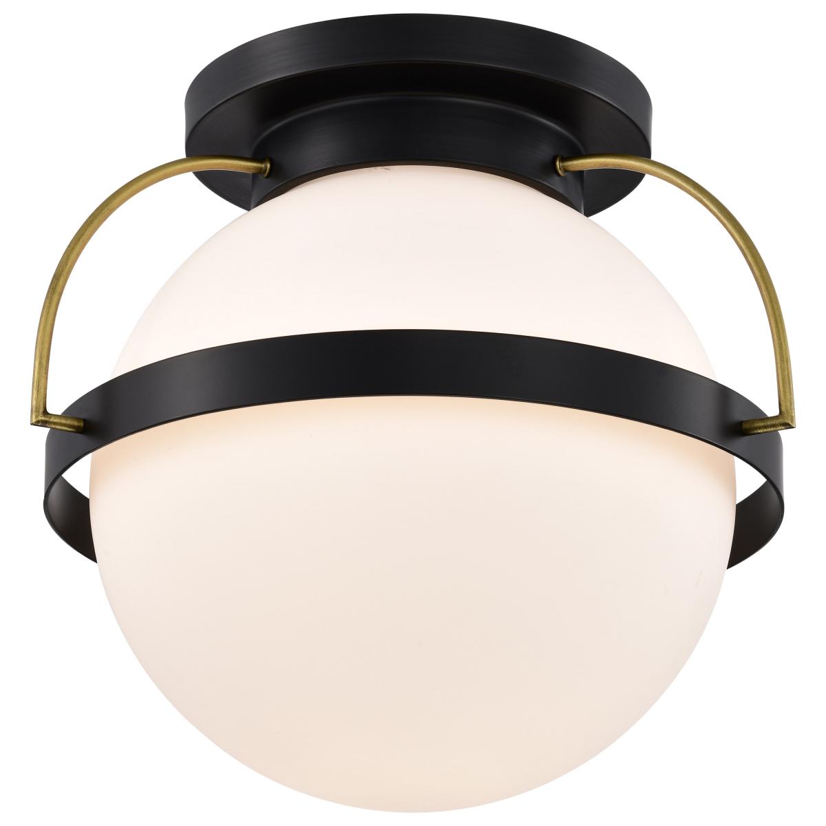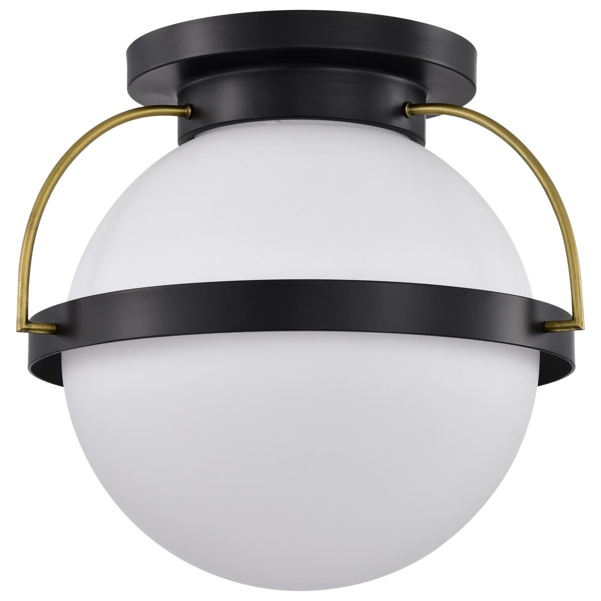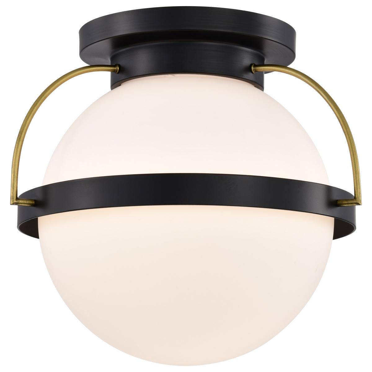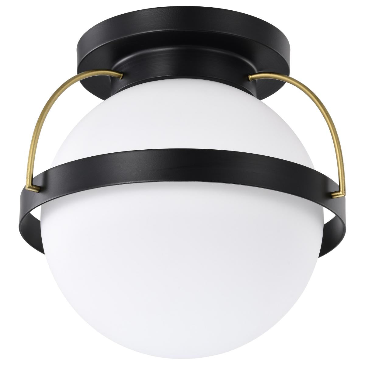 Satco Nuvo Lakeshore 1 Light Small to Large Flush Matte Black And Natural Brass Finish With White Opal Glass
