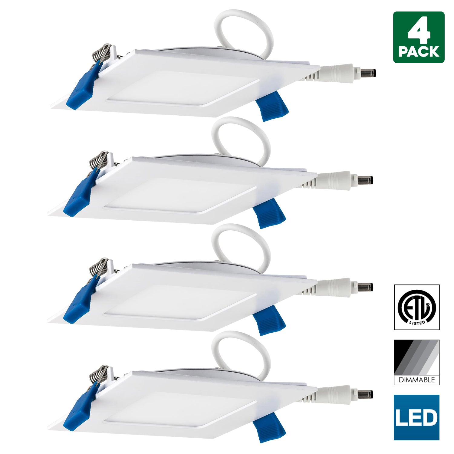 Sunlite 4-Inch Square 10 Watt Recessed Ultra Slim Dimmable LED Downlight, 650 Lumens (60W Equal), 4000K Cool White, ETL & Energy Star, Kitchens & Living Rooms, Commercial & Residential, White