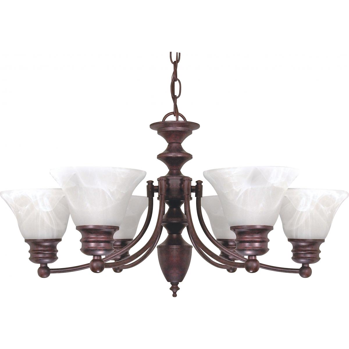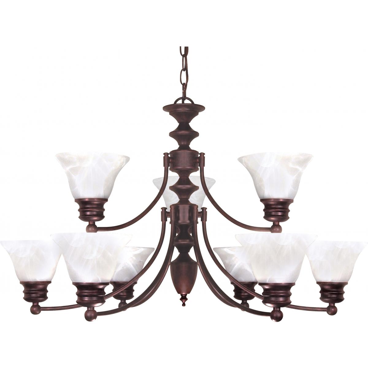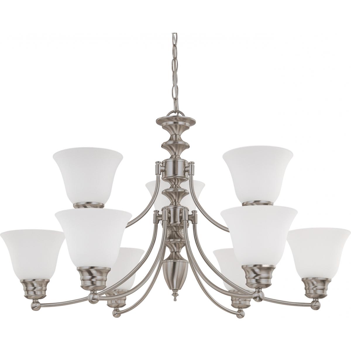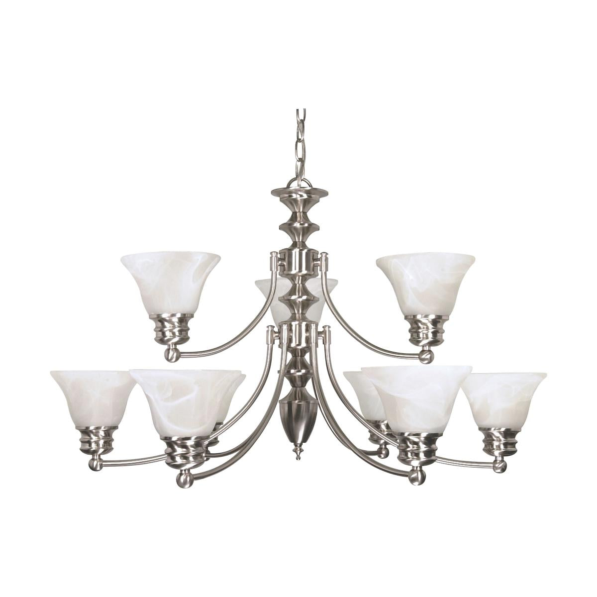 Satco Nuvo Empire 6-9 Light Chandelier With 2 Tier/Champagne Linen Washed Glass/ Frosted White Glass