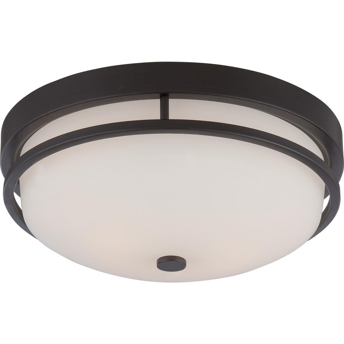 Satco Nuvo Neval 2-Light Flush Fixture With Satin White Glass - Brushed Nickel/Sudbury Bronze - 60W - 120V