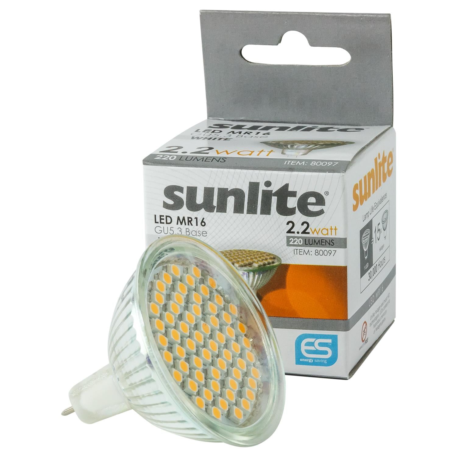 Sunlite LED MR16 Mini Reflector 2.2W (25WW Equivalent) Light Bulb (GU5.3) Base, White