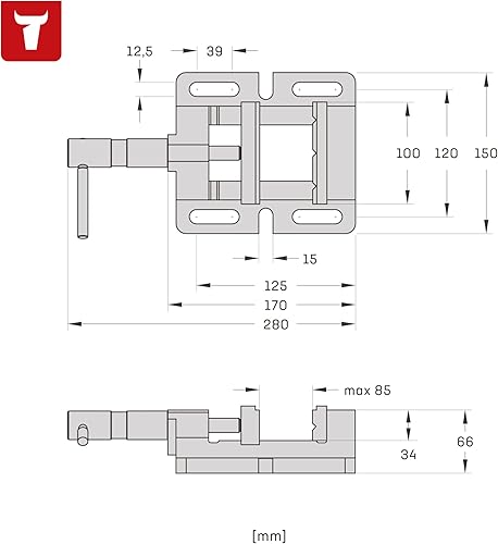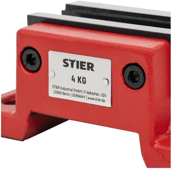STIER Maschinenschraubstock, Backen-B. 100 mm, Spann-W. 85 mm, V-Nut für Rundmaterialien, 1100 N Spannkraft, 4,3 kg