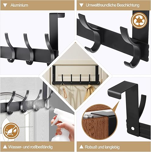 AUXHCYL Türhaken zum Einhängen Platzsparend Türgarderobe zum Einhängen Praktischer Kleiderhaken Tür, Türhaken Innenseite von Kleidung, Handtüchern und Hüten(Schwarz)