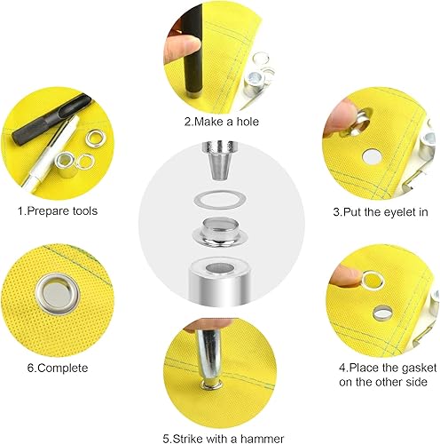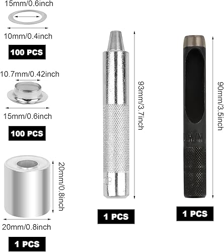 100 Sets Ösen Set, Grommet Werkzeug Kit, Ösen Scheiben Ösenwerkzeug, Ösen Grommet Werkzeug Kit 10mm, mit 3tlg Werkzeugset, für Schuhe, Gepäck, Leder, Plane, Zelte, Markisen, Taschen (10mm)
