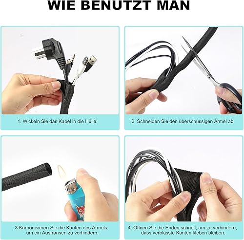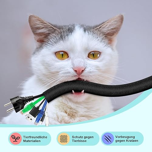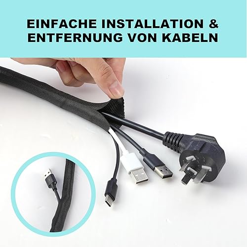 AGPTEK 3m Kabelschlauch, 20mm selbstschließend Kabelkanal, Flexibler Textilien Kabelmantel, Kabelmanagement für Schreibtisch, TV, Computer, PC, Kabelschutz für Hund, Katze, Schwarz